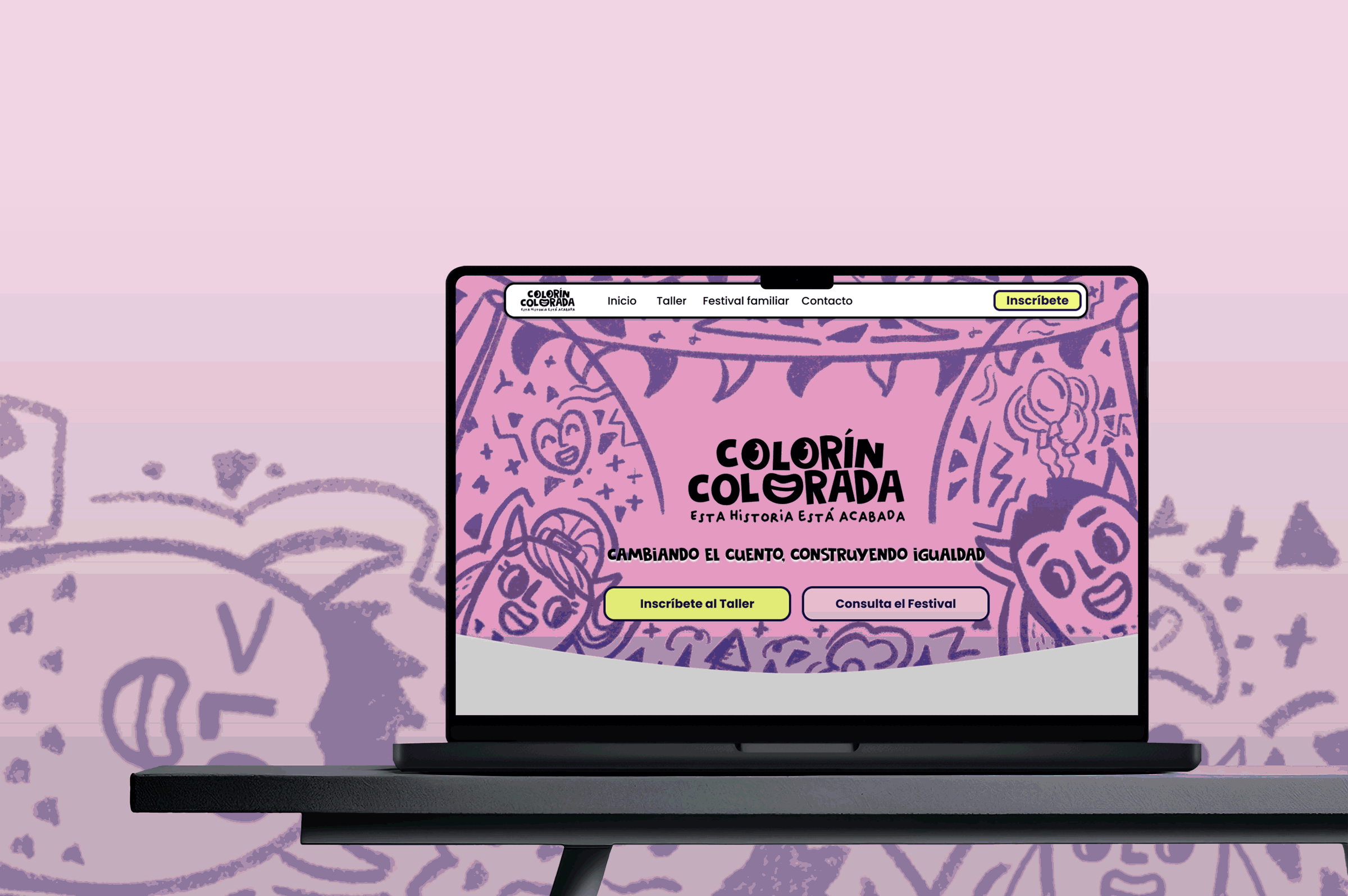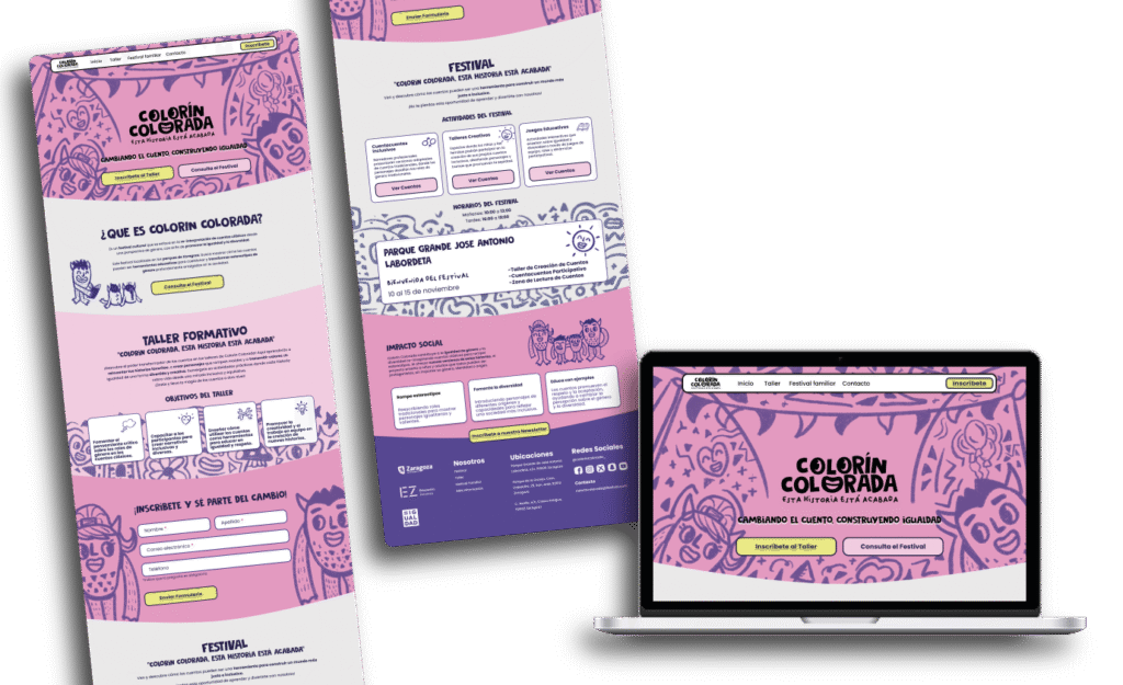 La landing page actúa como eje de comunicación, ofreciendo información sobre el proyecto, las inscripciones al taller y la programación del festival, todo dentro de un diseño limpio, amable y accesible.